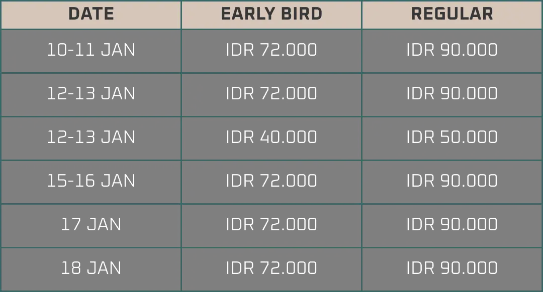 Ikuti keseruannya selama 3 hari penuh di Stadion Madya GBK dan saksikan keseruan watch party, show match, meet & greet tim, fun games, penampilan artis, dan masih banyak lagi!
